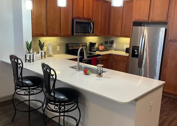 Pour profiter de vos vacances à Houston, séjournez à Appartement Houston Luxury 1Br-3Bd-Pool-Gym, qui se trouve à 19 minutes de marche du Stade de baseball Minute Maid Park et à seulement 8 minutes de marche du centre d'exposition CLE. En séjournant dans l'appartement, niché à côté du Toyota Center, les clients peuvent se détendre sur une terrasse.